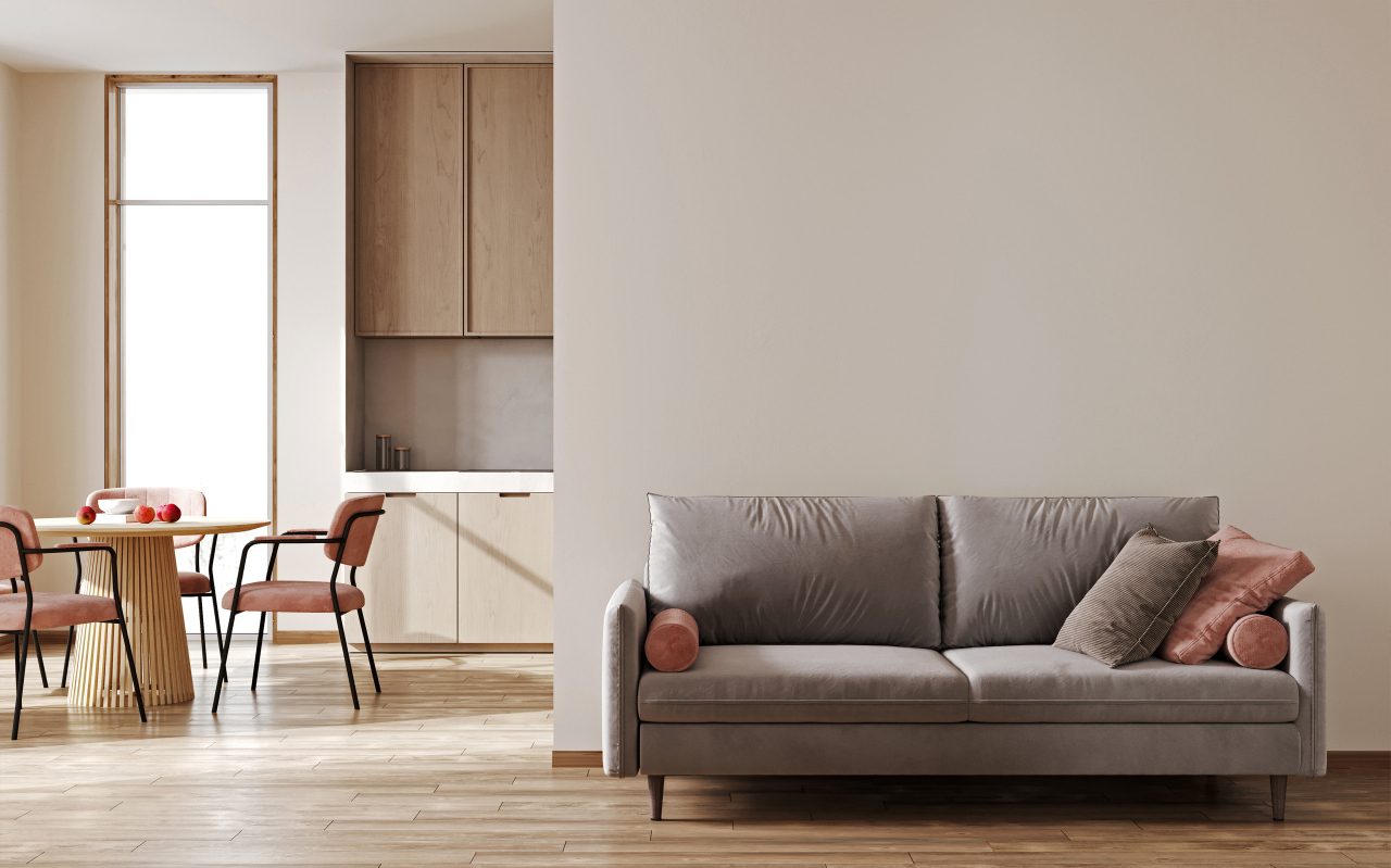 Barwy takie jak biel, szarość, beż oraz subtelne pastele to ponadczasowa klasyka, która doskonale sprawdza się w minimalistycznych wnętrzach. Dzięki nim przestrzeń staje się optycznie większa, jaśniejsza i bardziej uporządkowana – co ma szczególne znaczenie w mniejszych mieszkaniach.